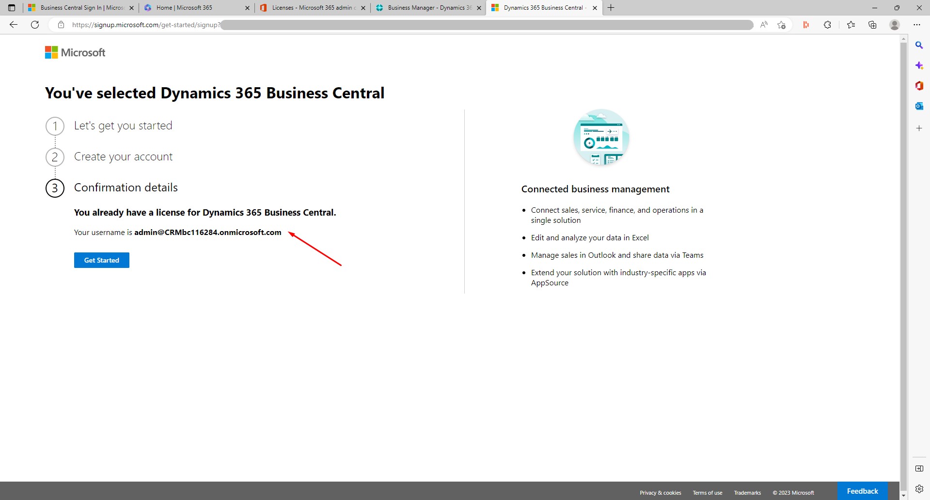 In Order to signup for Business Central for 90 Days, you will receive a link to paste into your browser with Office 365 signed in.